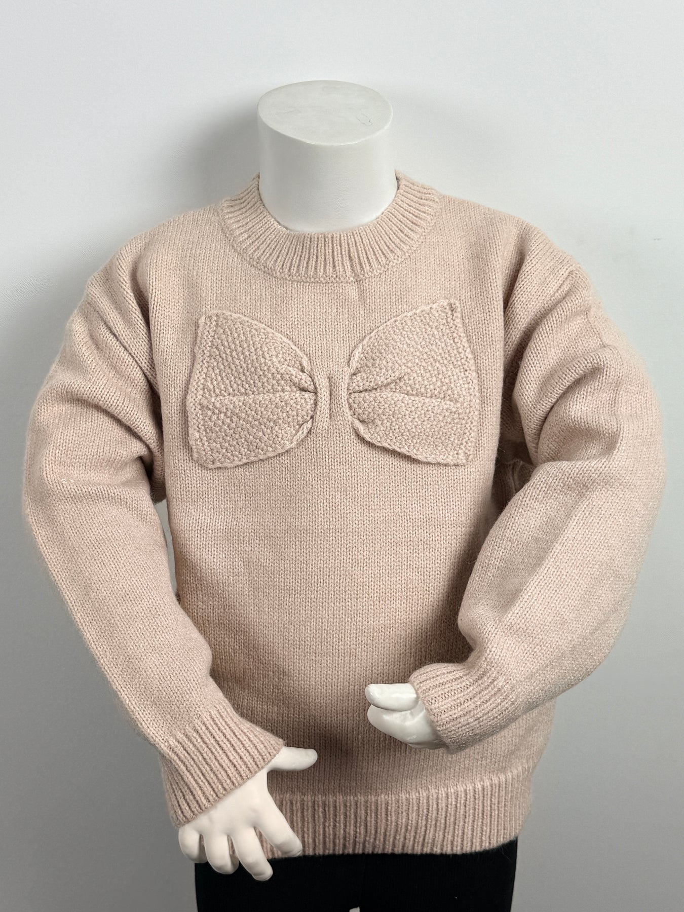 De beige meisjes trui met strik is het ideale cadeau om te geven!